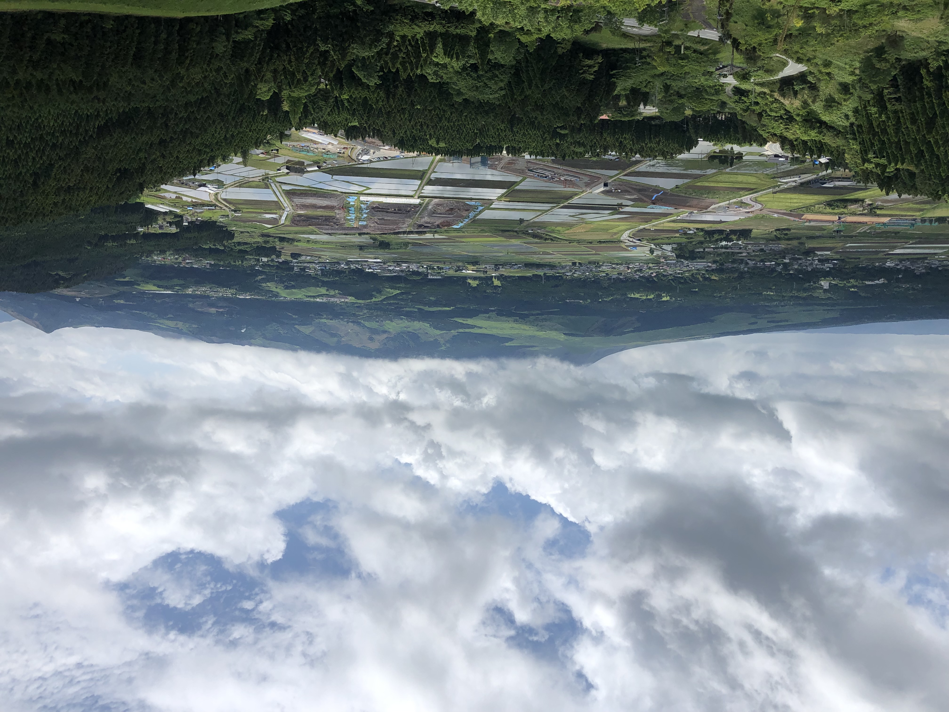 道中の阿蘇の麓の景色は今綺麗です。なだらかな山なみと、緑が明るい緑、深い緑、と絵具でかいたようで、オッ!て感じです。