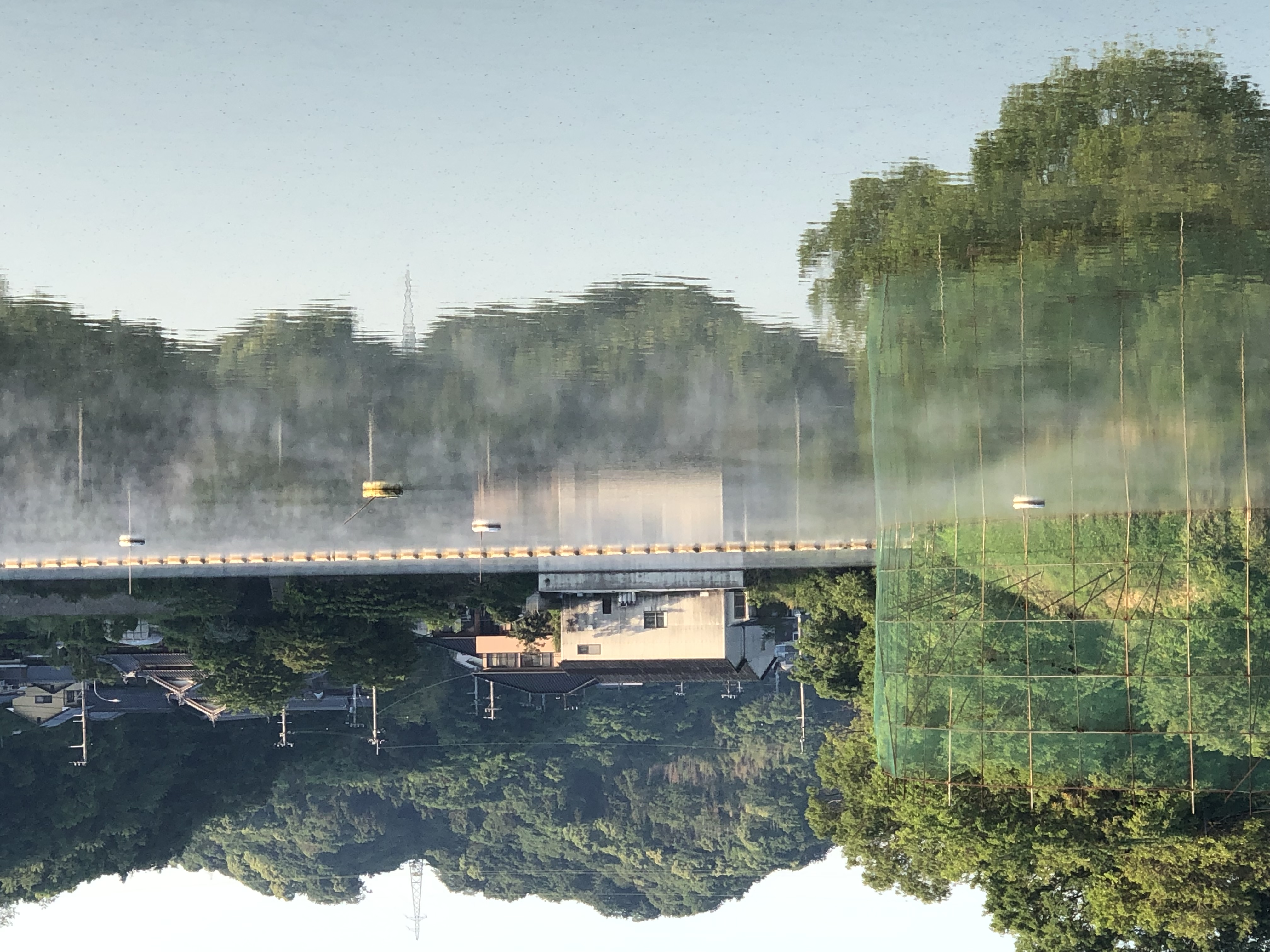 朝が寒くて昼が暑いせいか、朝がた池の水面からモヤが上がってました。