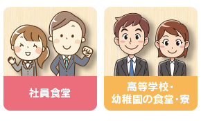 当社は委託給食という形でお客様の要望に沿ったメニューを調理スタッフが現場で調理して、提供しています。調理スタッフは住み込み、通い(かよい)どちらでも対応します。
